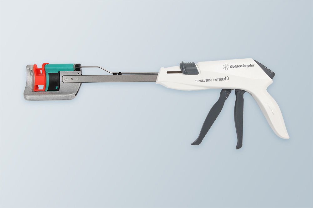 When using total mesorectal excision technique (TME) for low anus-preserving surgery for rectal cancer, due to the small pelvic space, the surgeon needs a medical device that can reach the deep pelvic, as far away as possible from the tumor site, and traverse the distal rectum, and can provide a good surgical vision to see the operation process. The Single Patient Use Transverse Cutter and Reload developed by GoldenStapler can meet the surgeon's requirements for instruments. The curved small head occupies a small space, easier for vertical placement into deep pelvic and provides a relatively long curved cutting and stapling line; the curved inner side provides a very good surgical vision.