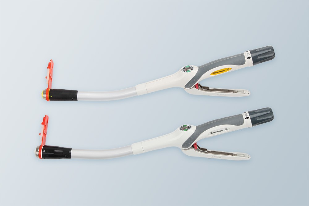根据吻合器钉砧头外径(单位:毫米),健瑞宝有五个规格型号,分别为21,23,26,29,32。与国际品牌规格相比,多一款23型号,介于21与26之间,在胸外科做食管手术时,从创造最适当吻合口内径角度出发,医生有更多管径吻合器的选择。